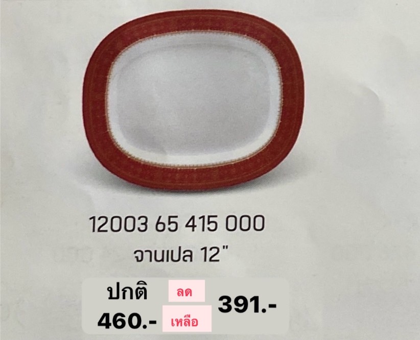 จานเปล 12″ 1 ชิ้น ลายทับทิมทอง