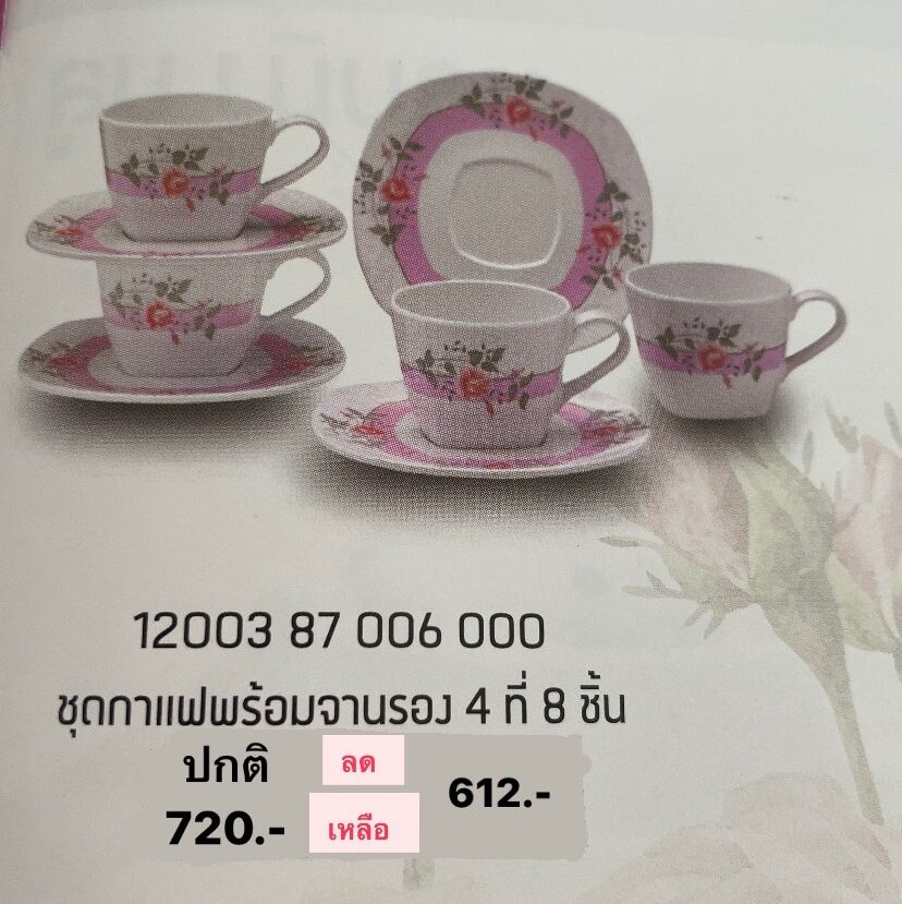 ชุดกาแฟพร้อมจานรอง 4 ที่ 8 ชิ้น ลายมิดเดย์ โรส