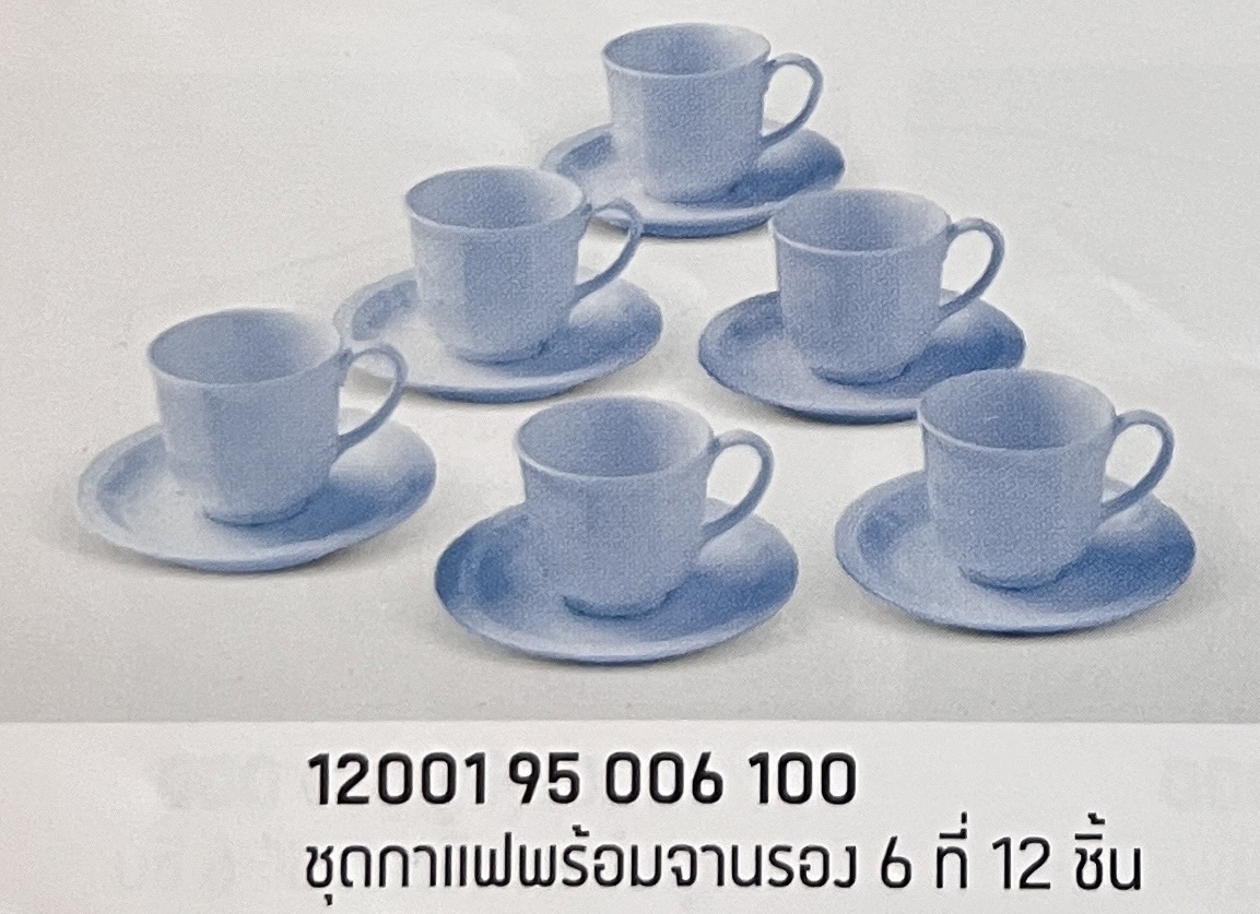ชุดกาแฟพร้อมจานรอง 6 ที่ 12 ชิ้น ลายสีพื้นคลาสสิค (สีฟ้า)