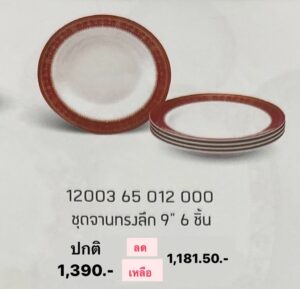 ชุดจานทรงลึก 9″ 6 ชิ้น ลายทับทิมทอง