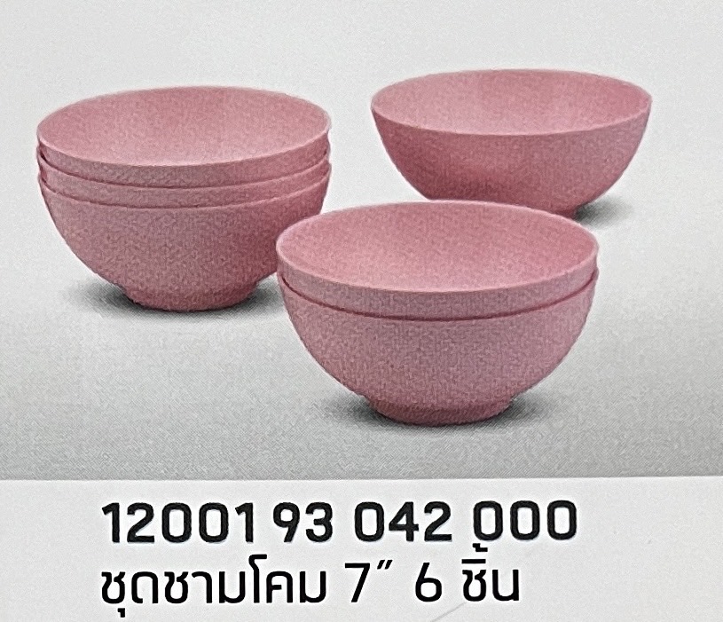 ชุดชามโคม 7″ 6 ชิ้น ลายสีพื้นทรงกลม (สีโอลด์โรส)